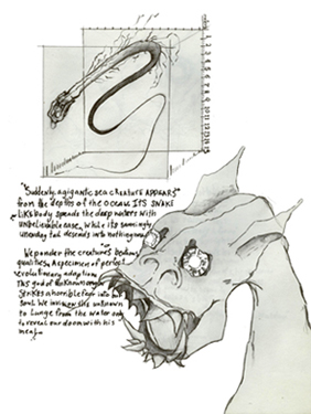 Dream imagery and symbolism is a constant source of inspiration for Jonathan's films and artwork. The idea that eventually became Jonathan's feature film "Rest in Time," came in a dream and all contained in "Book One." Today Jonathan has created about 50 books, and is continually adding to this extensive document of ideas, experiments, and discoveries. Below is a sampling of Jonathan's "Dream Sequence: One," including early art concepts for "Rest in Time."