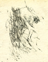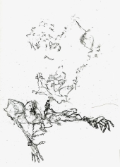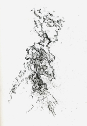 This "Ink Painting" series uses aged paper and permanent black ink. Jonathan used the ink not only in its pure or diluted liquid form, but also its hardened form, which allowed him to work with the ink like charcoal or a rub, in order to achieve a more finely detailed, painterly final product that also maintains the organic, gestural quality of the "Line Drawing" series.